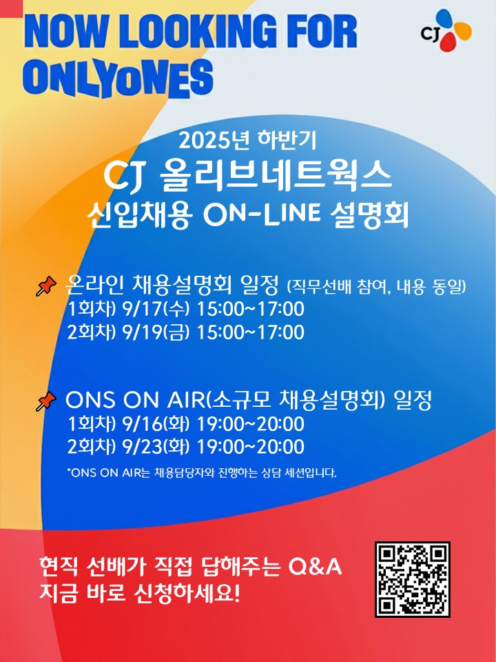CJ올리브네트웍스 온라인 채용설명회 안내합니다.